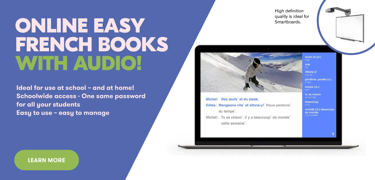 I just purchased a few of the books & audio ebooks for our school. What a great way to cover all 4 strands of the curriculum using these books and audio-visual ebooks by Aquila. Students are engaged!!! They are using technology (which they love; whether the chrome books or computer lab) to access the ebooks. The new curriculum emphasizes the importance of oral communication within the French as a Second Language classroom. I see students using these ebooks to practice their oral French whether at home or at school. Students are getting a faster understanding of the story because they are seeing the story & listening at the same time. In turn, these resources save me time & make my job easier. Kids are finding French fun.